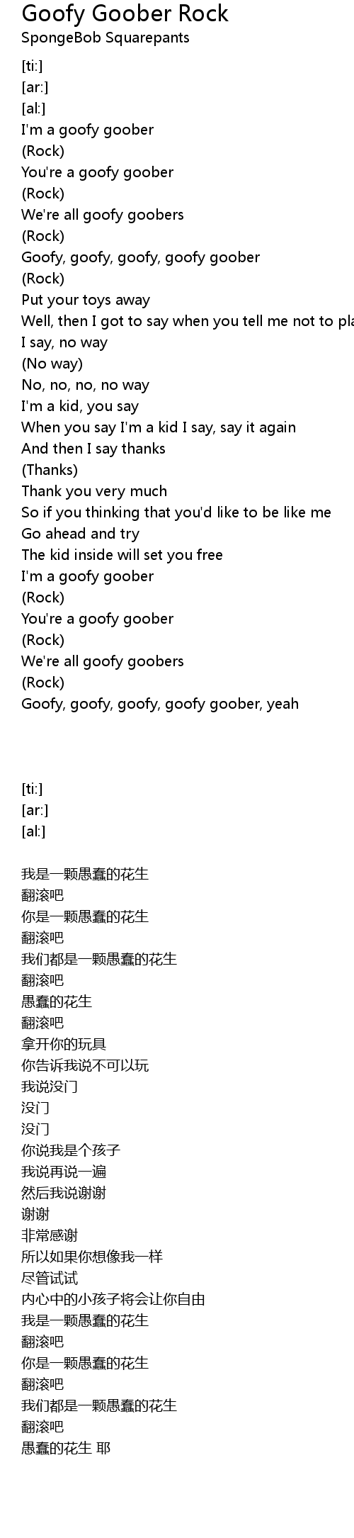 Goofy, goofy, goofy, goofy goober, yeah |