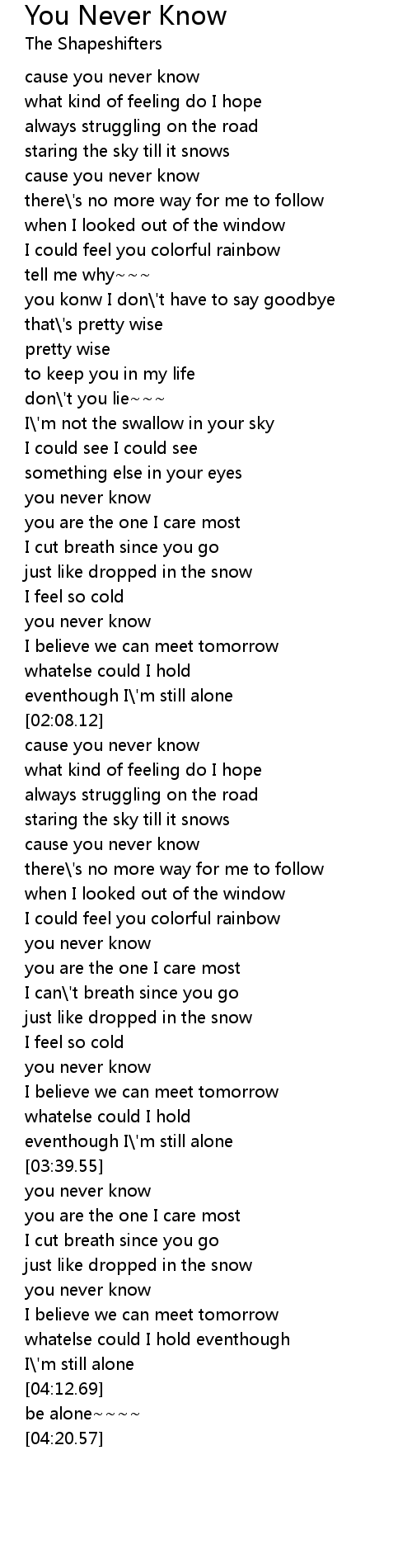 you never know |