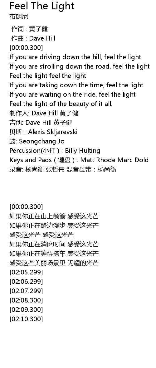 | [01:03.299] | Feel the light feel the light |