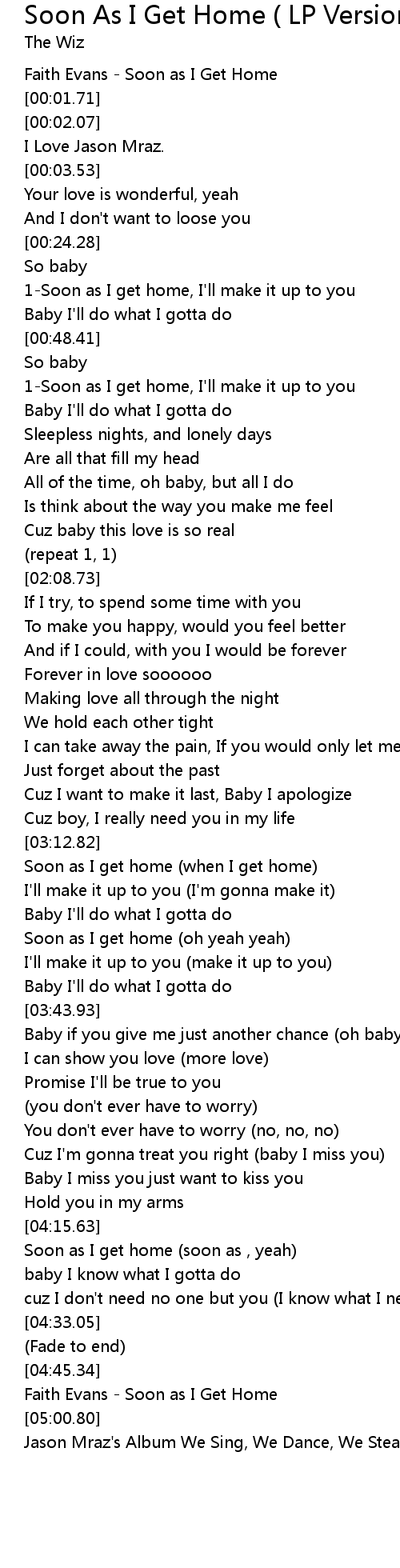 | [00:01.42] | Faith Evans - Soon as I Get Home |