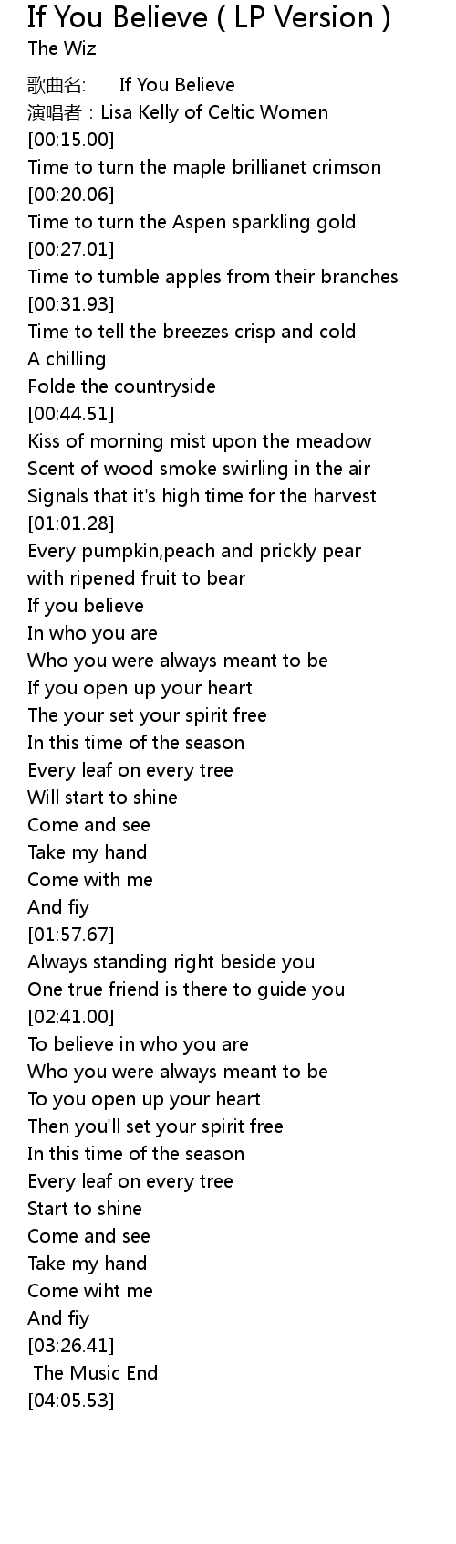 | [00:10.00] | gē qǔ míng: If You Believe |