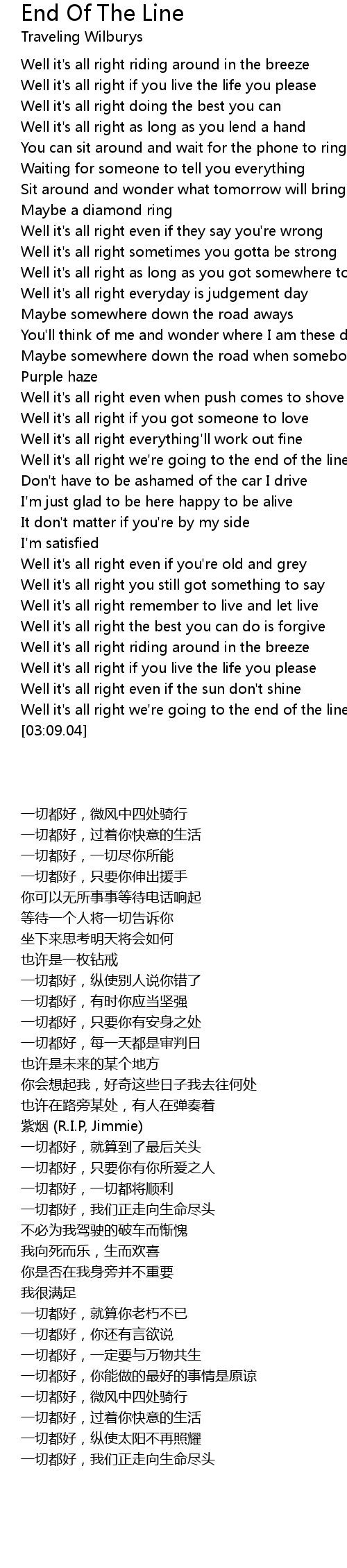 Well it's all right we're going to the end of the line |