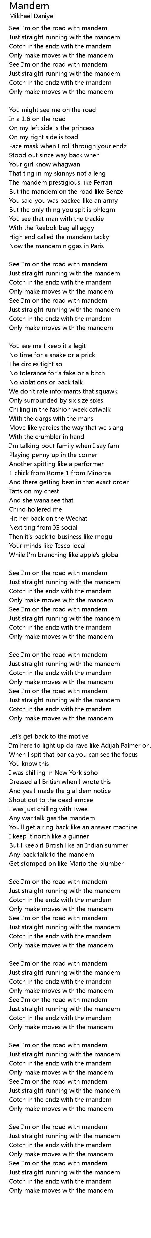 See I'm on the road with mandem |