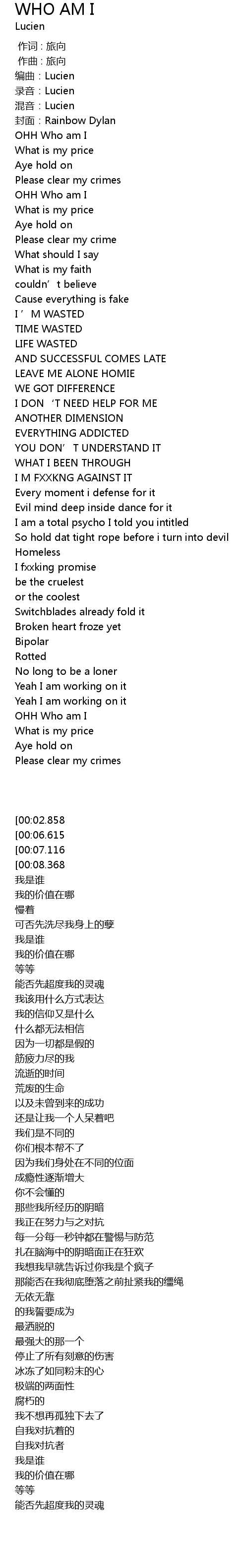 | [00:09.619] | OHH Who am I |
