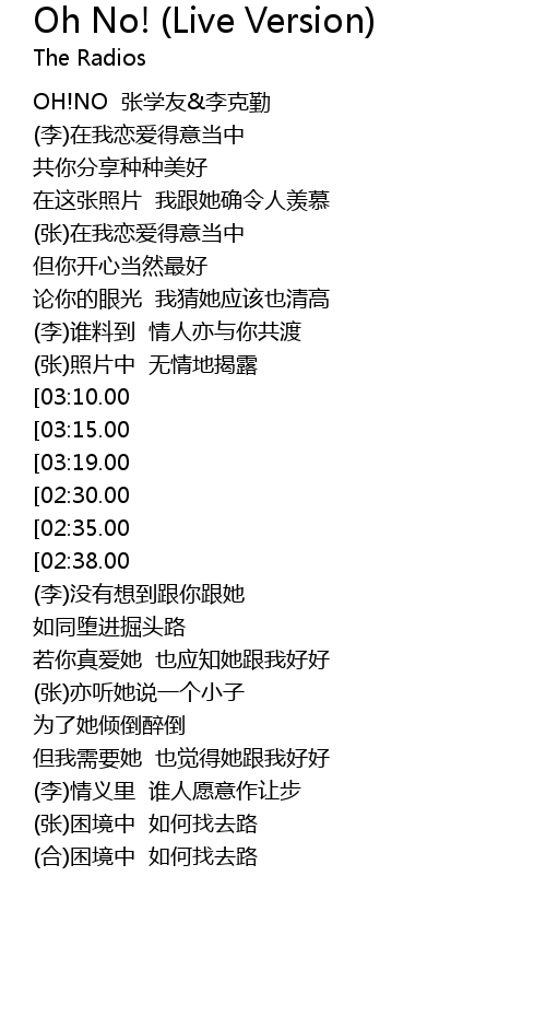 | [00:00.00] | OH!NO 张学友&李克勤 |