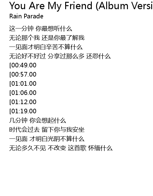 | [02:39.00][01:19.00] | You Are My Friend. You Are My Friend |