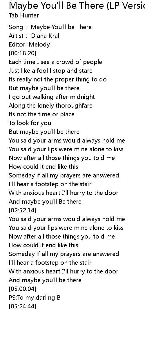 | [00:01.13] | Song: Maybe You'll be There |