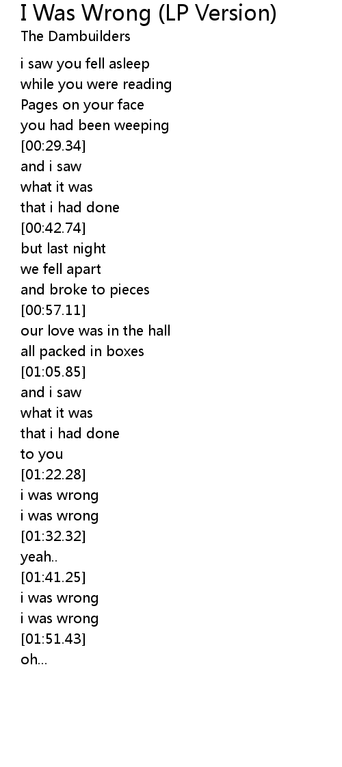 I Was Wrong (LP Version) Lyrics