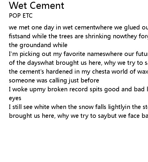 | I'm picking out my favorite nameswhere our future is concernedin the steady blur of the dayswhat brought us here, why we try to saywe face back all the waynow the cement's hardened in my chesta world of waxscraped in through textand someone was calling just before | |