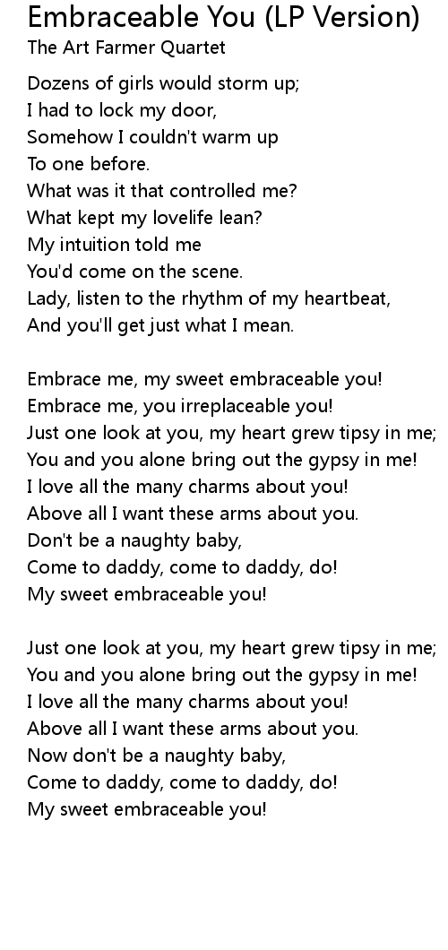 Embrace me, my sweet embraceable you! |