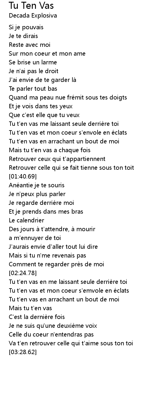 | [02:43.01] | Tu t' en vas en arrachant un bout de moi |