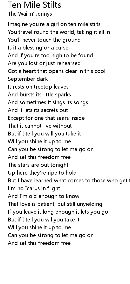 Imagine you're a girl on ten mile stilts |