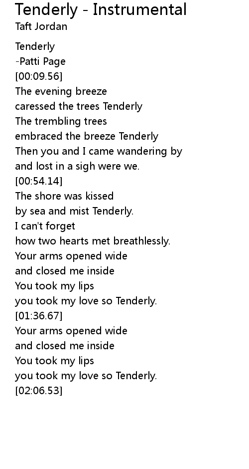 Tenderly - Instrumental Lyrics