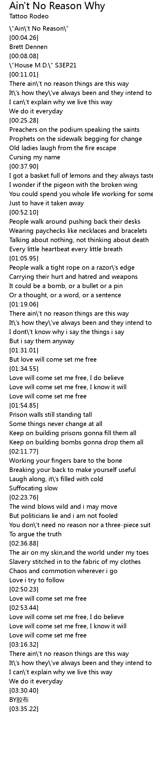 | [03:18.12] | There ain' t no reason things are this way |