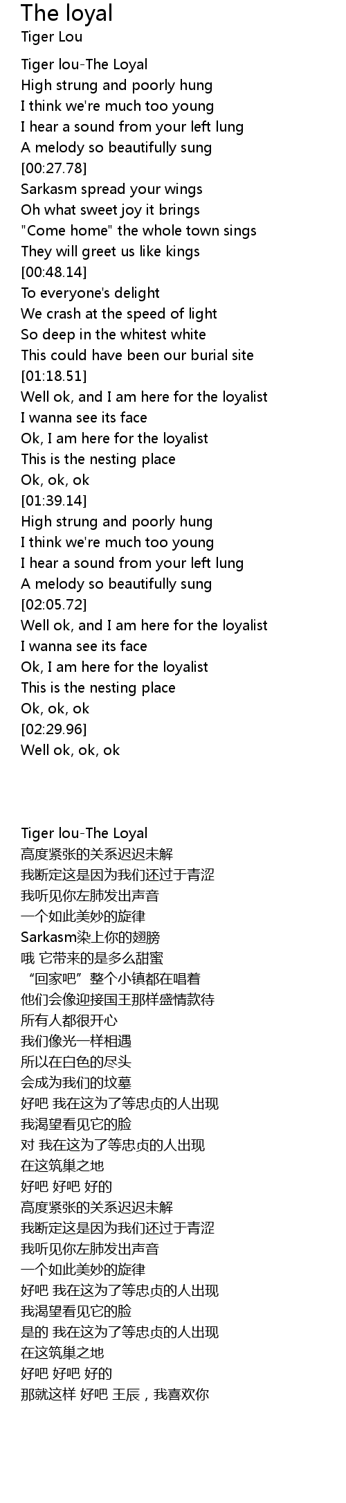 | [00:03.95] | Tiger lou-The Loyal |