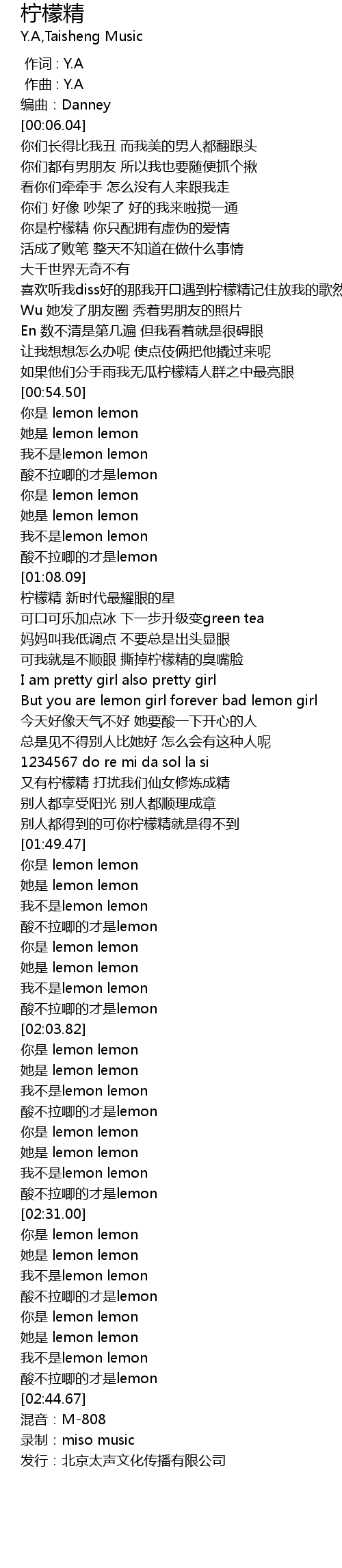 | [01:51.68] | 她是 lemon lemon |