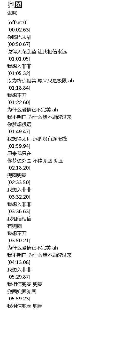 | [06:01.93] | 我相信兜圈 兜圈 |