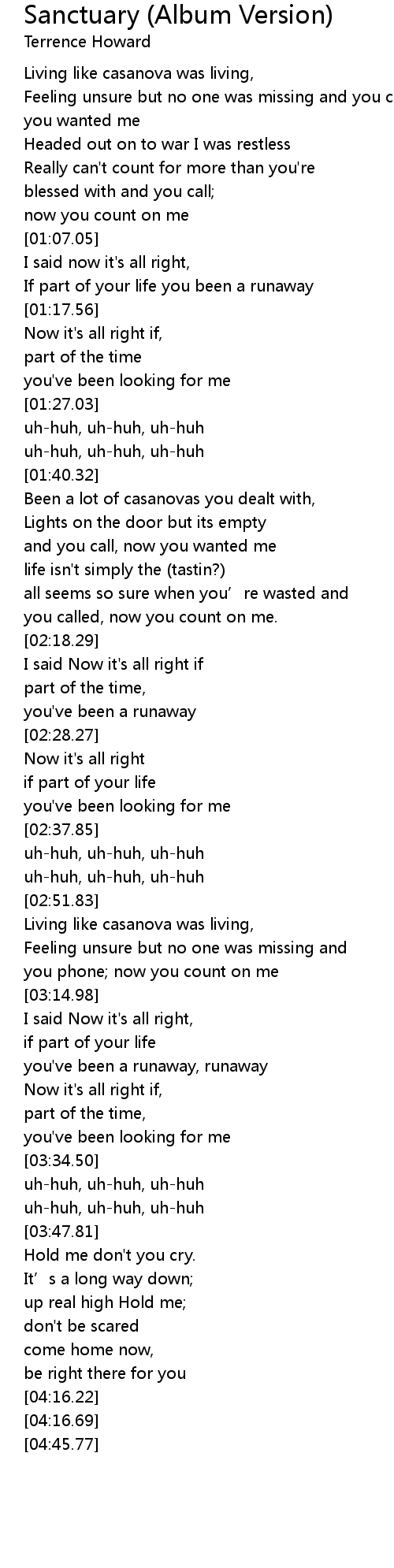 | [01:13.58] | If part of your life you been a runaway |