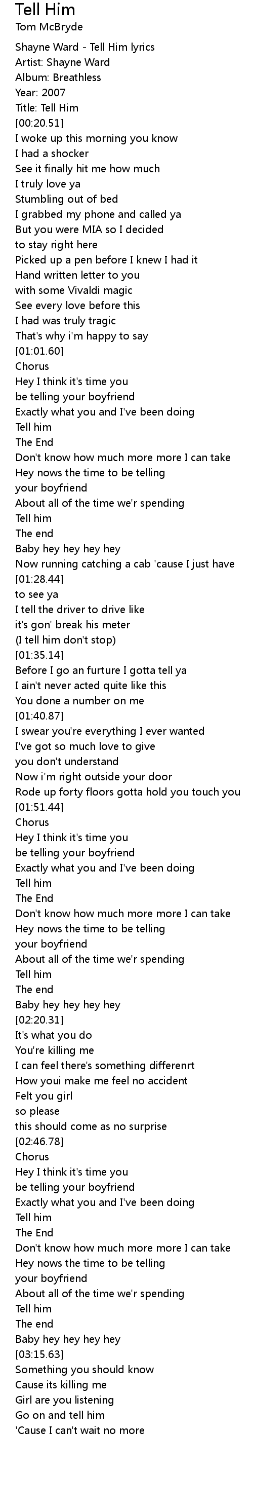 Shayne Ward - Tell Him lyrics |