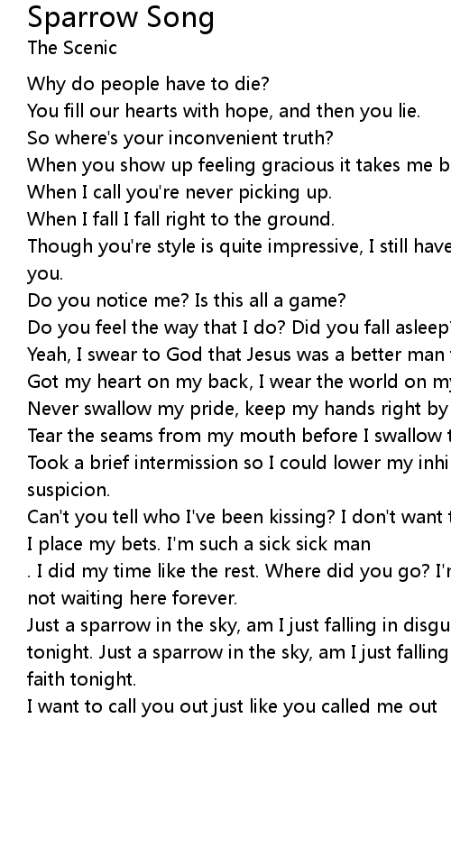 tonight. Just a sparrow in the sky, am I just falling in disguise? I'm losing |