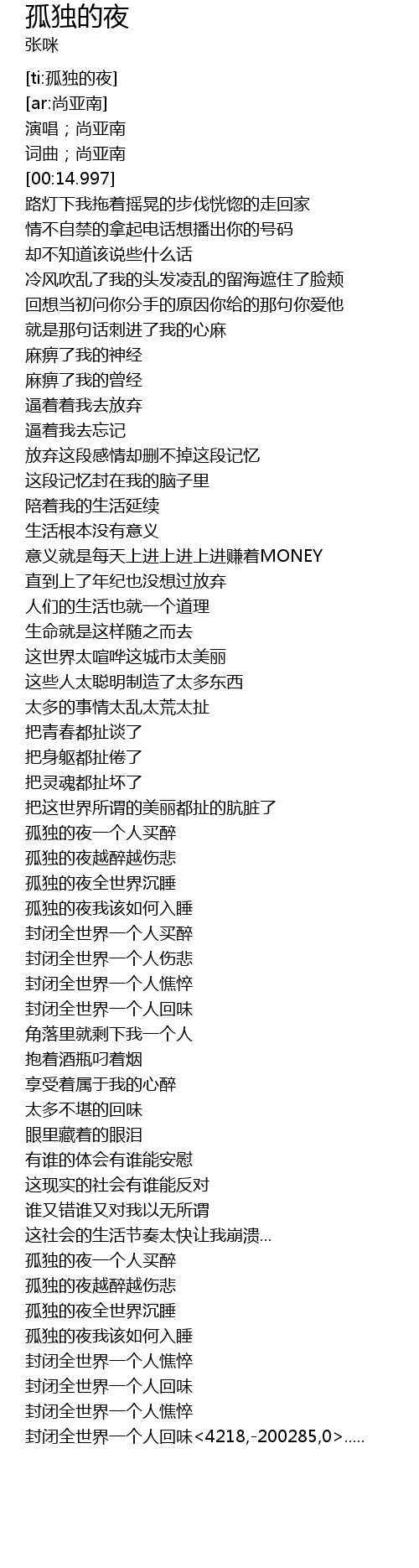 | [01:37.433] | 孤独的夜越醉越伤悲 |