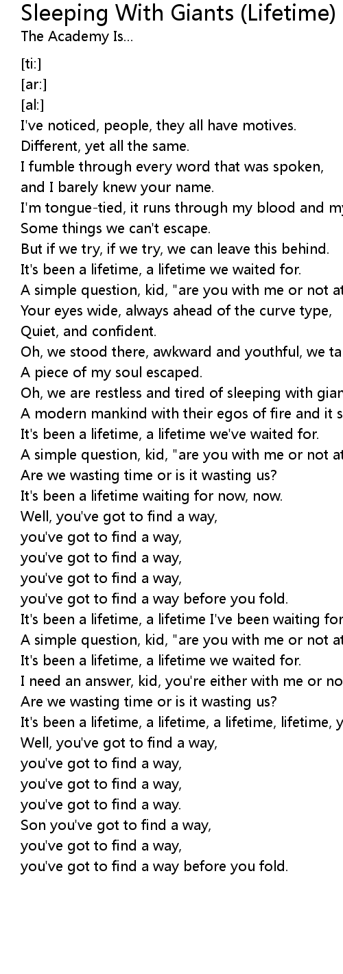Oh, we are restless and tired of sleeping with giants, |