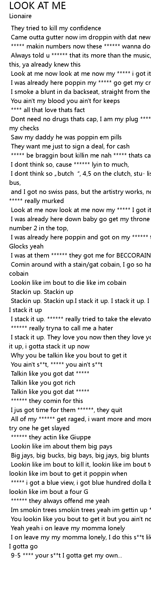 | [00:28.682] | Look at me now look at me now my ***** i got it on, |
