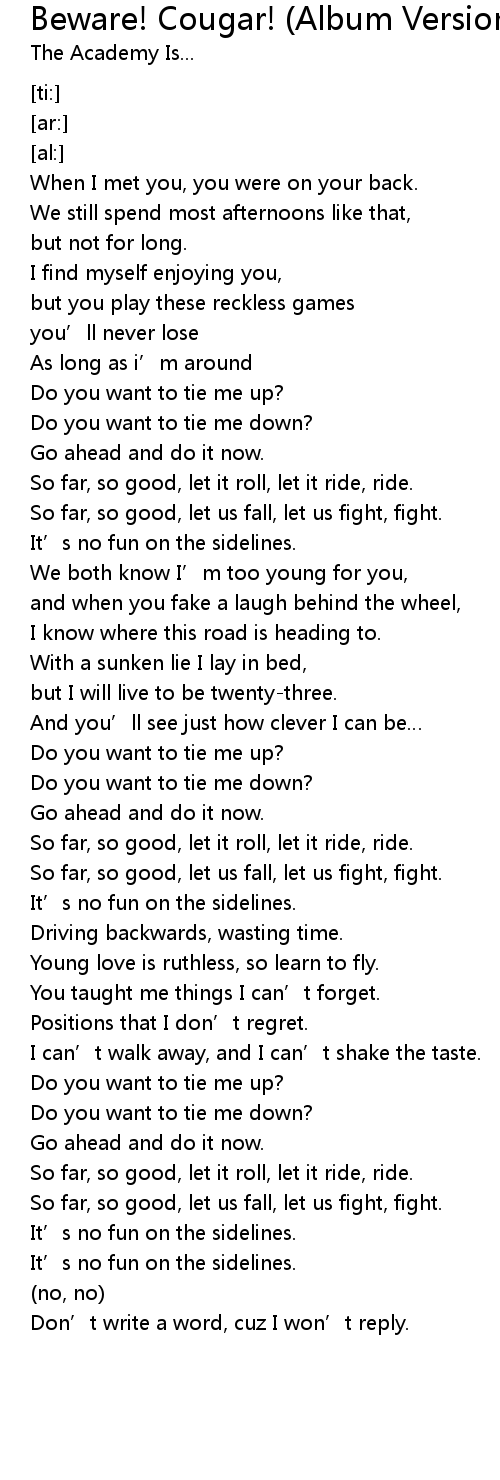 | [00:40.13] | So far, so good, let it roll, let it ride, ride. |