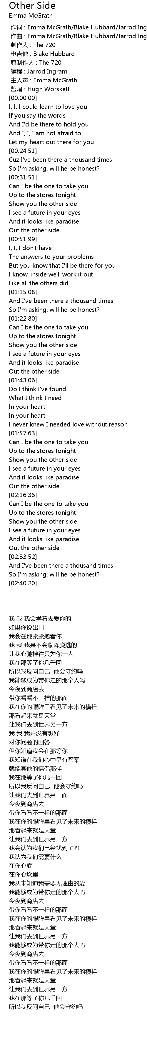 | [00:00.00] | 作曲 : Emma McGrath/Blake Hubbard/Jarrod Ingram |