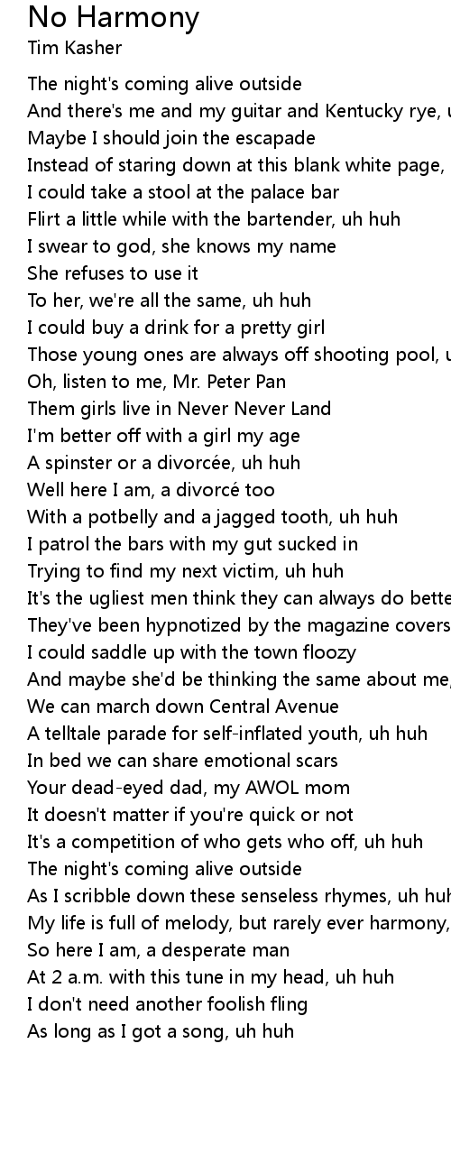 | My life is full of melody, but rarely ever harmony, uh huh | |