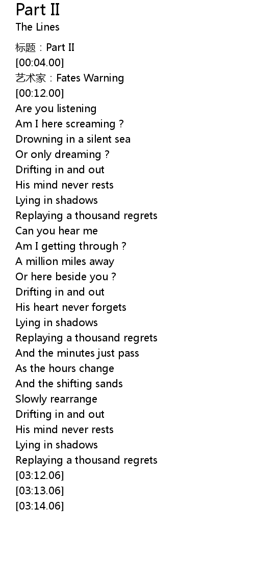 | [00:00.00] | 标题:Part II |