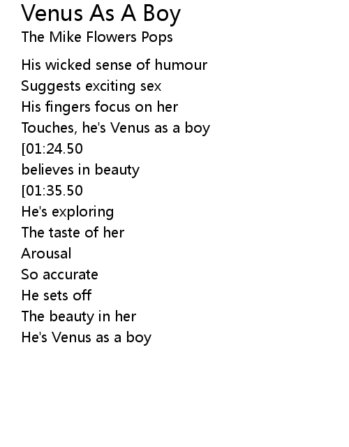 | [01:21.50][01:35.50][03:00.50][03:14.50] | He's Venus as a boy |