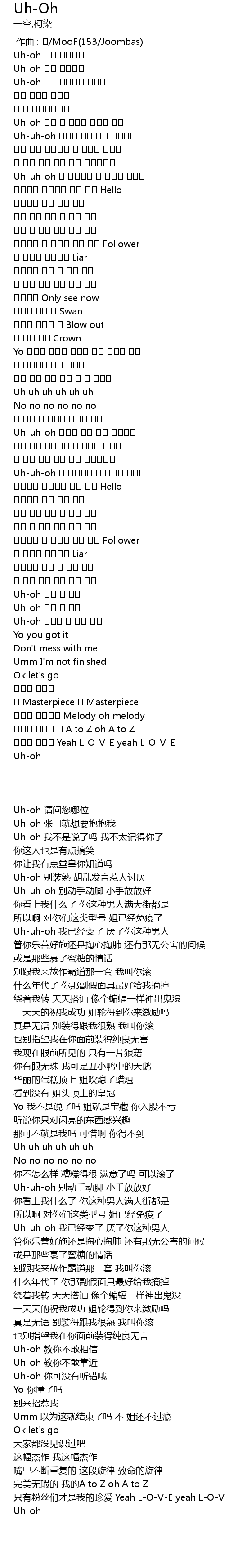 | [00:31.034] | Uh-oh 친한 척 말아줘 말하고 다녀 |