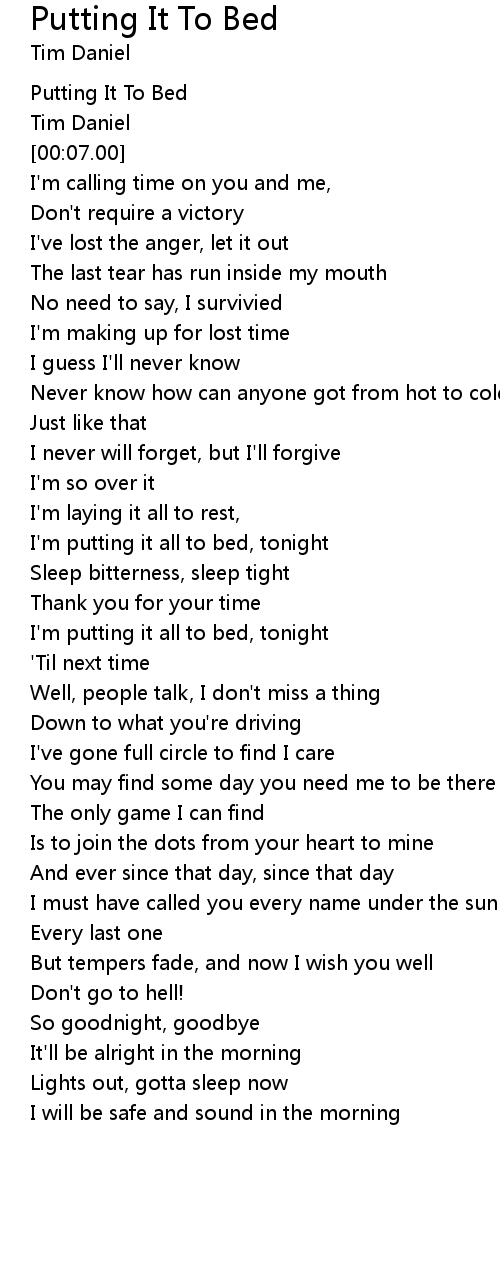 I'm putting it all to bed, tonight |