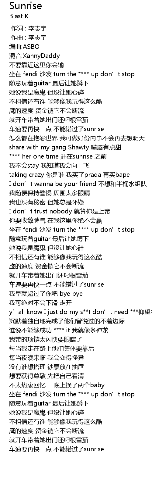 | [01:16.885] | 坐在 fendi 沙发 turn the **** up don’t stop |