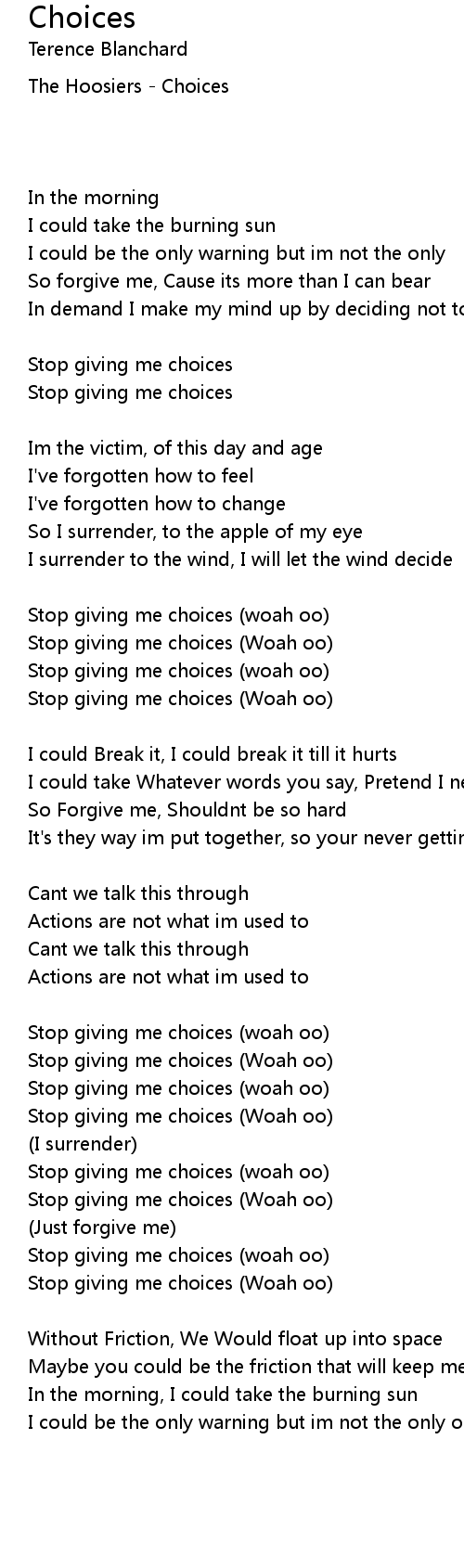 Stop giving me choices (woah oo) |