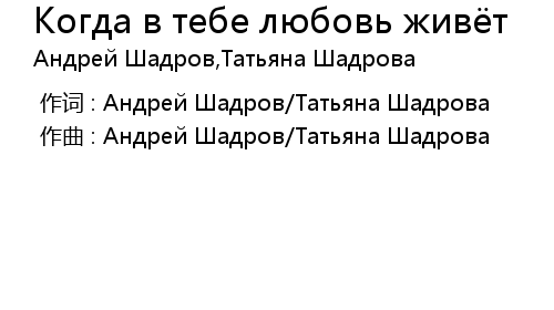 | [00:00.00-1] | 作曲 : Андрей Шадров/Татьяна Шадрова |