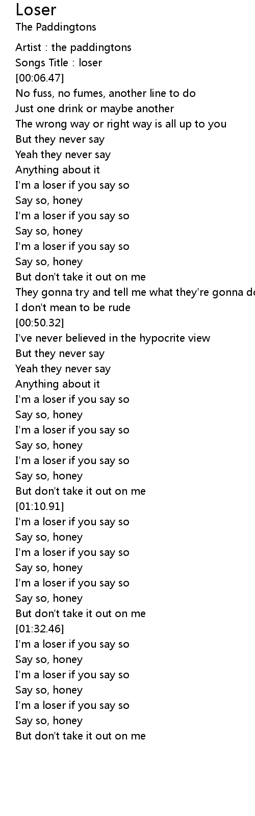 | [00:40.18] | I'm a loser if you say so |
