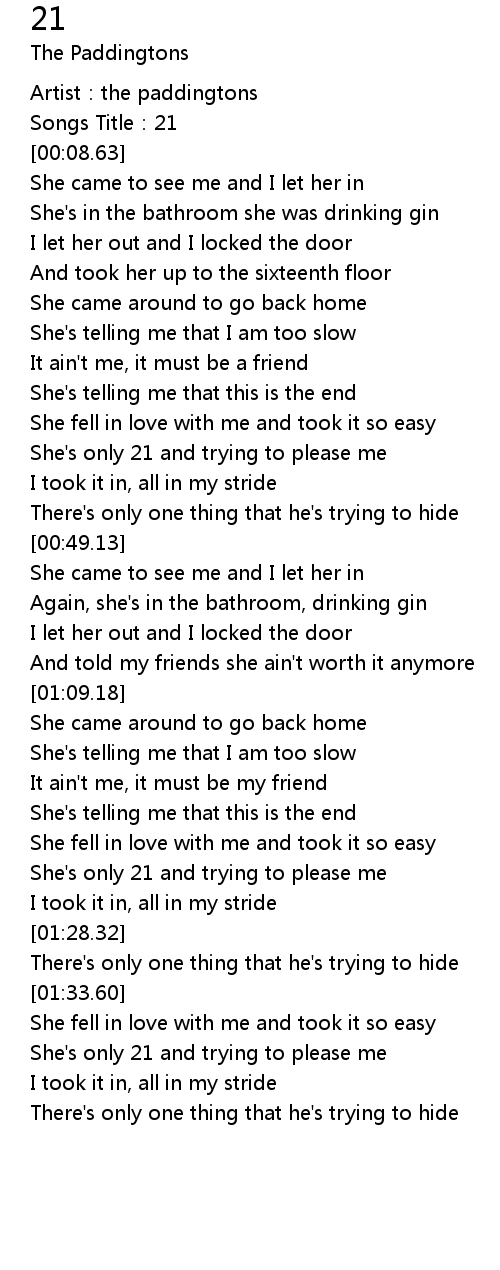 | [00:05.07] | Songs Title: 21 |