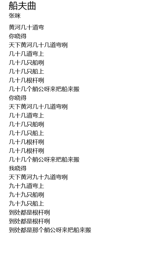 | [00:16.91] | 天下黄河几十几道弯咧 |
