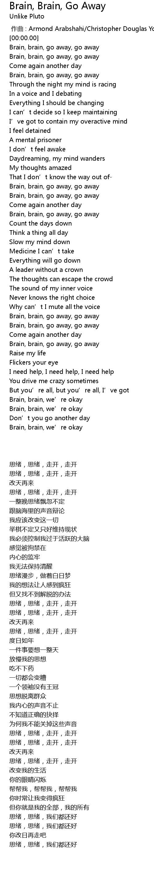 | [00:28.710] | I' ve got to contain my overactive mind |