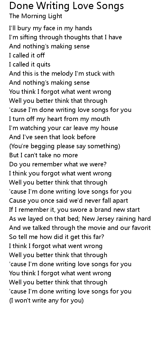 'cause I'm done writing love songs for you |