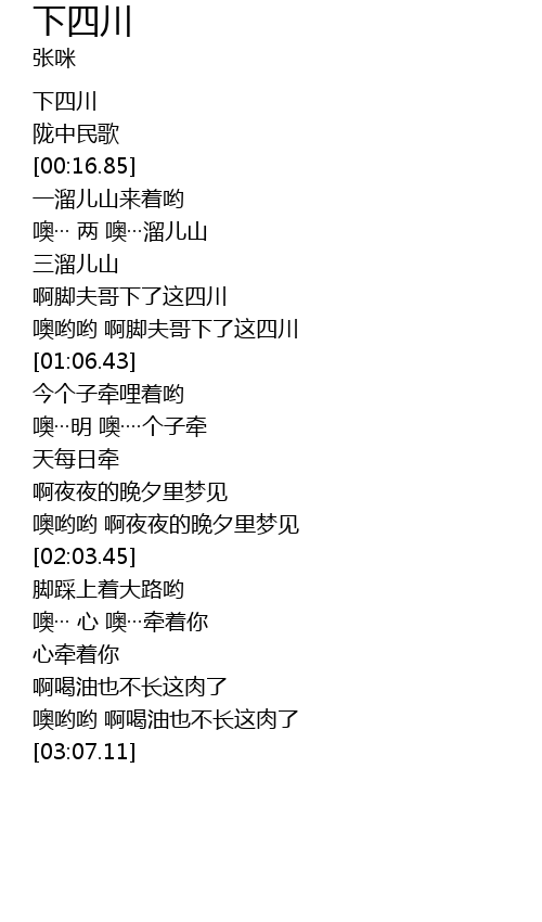 | [00:53.18] | 噢哟哟 啊脚夫哥下了这四川 |