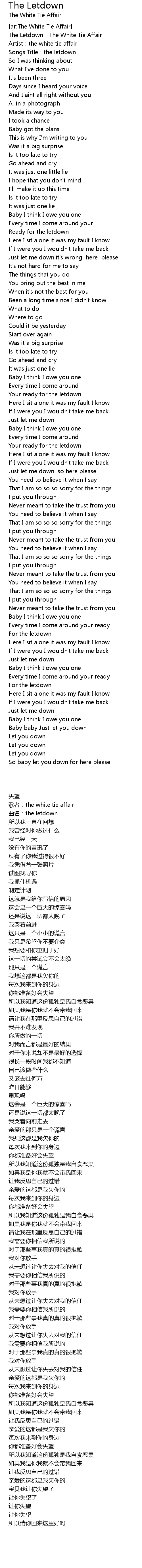 | [00:01.61] | The Letdown The White Tie Affair |