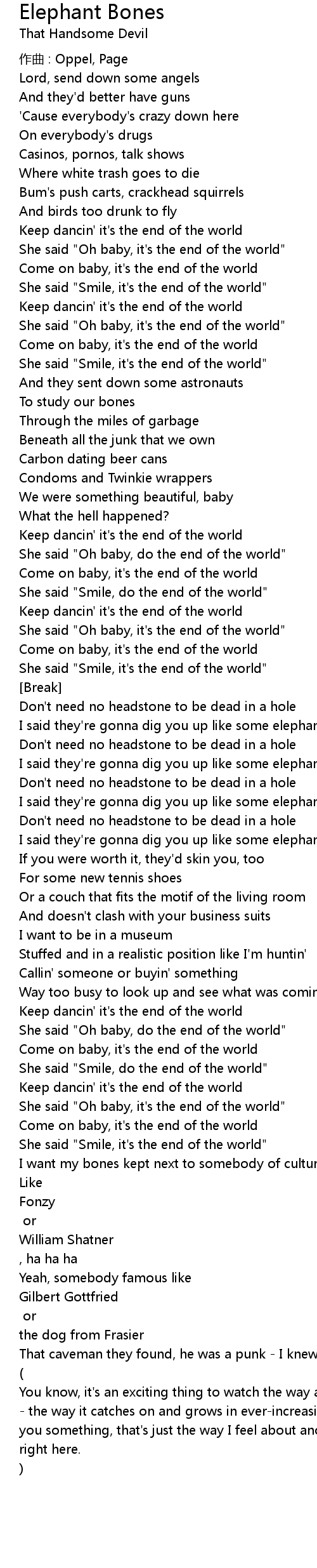 | I said they' re gonna dig you up like some elephant bones, bones, bones | |