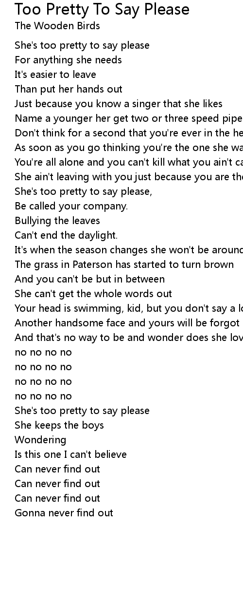 She's too pretty to say please, |