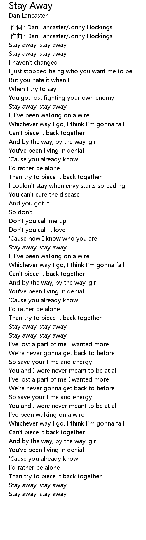 | [00:04.998] | Stay away, stay away |