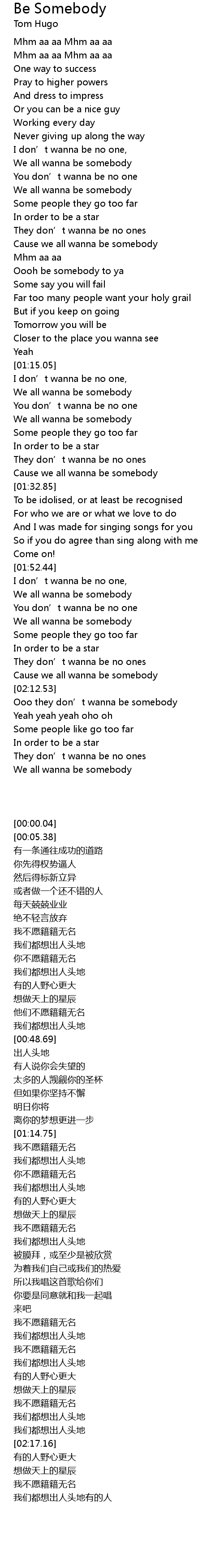 | [02:13.33] | Ooo they don' t wanna be somebody |