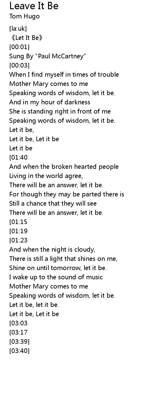 | [02:13][01:15] | Let it be, let it be. |