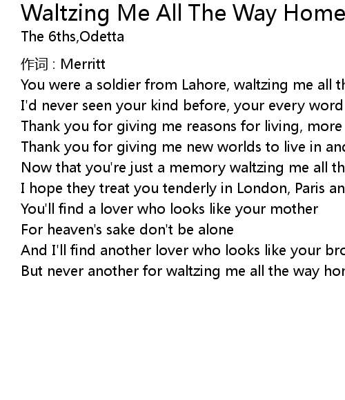 | But never another for waltzing me all the way home |
